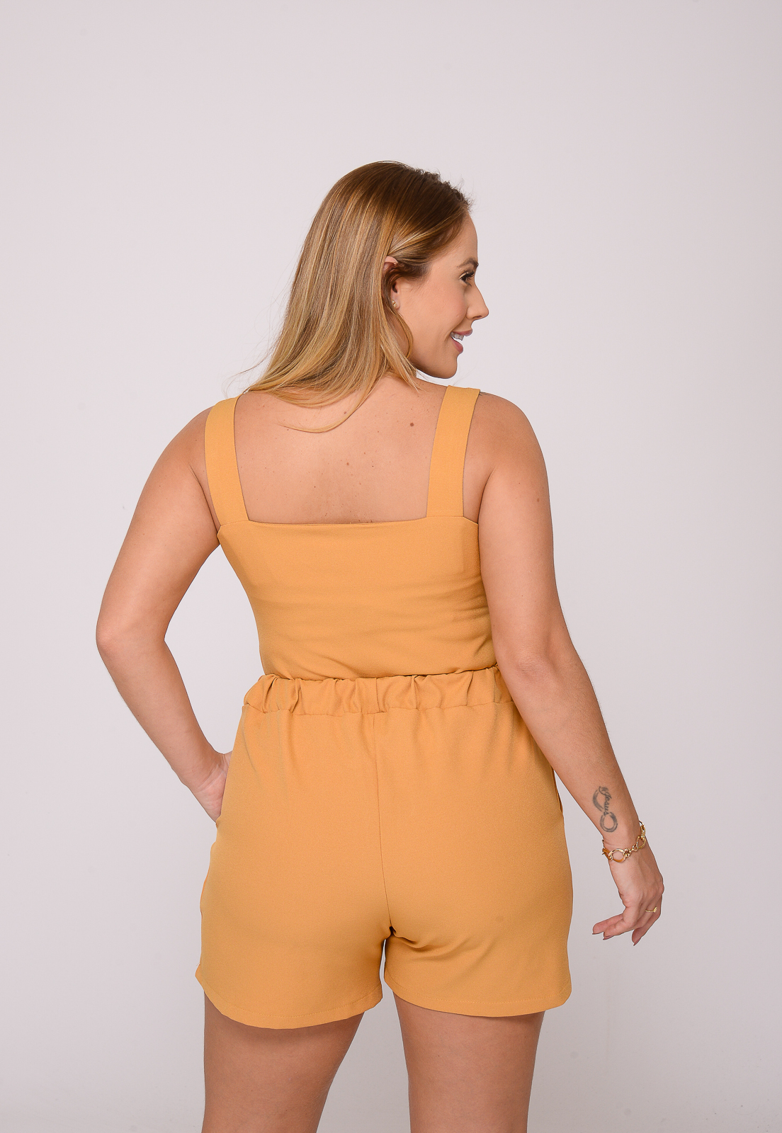 Shorts: Cintura 83cm (41,5cm x 2) – Quadril 106cm (53cm x 2)- Comp. 38cm – Bainha 68cm (34cm x 2) – Gancho 34cm;